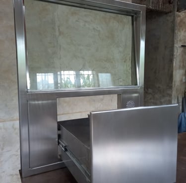 Fabricación de taquillas de seguridad en acero inoxidable 304 con vidrio blindado integrado y gaveta giratoria de intercambio. Atiende al cliente, entrega y recibe valores, documentos o productos sin abrir la barrera de protección. Para bancos, farmacias, gasolineras y cualquier negocio con atención nocturna.
