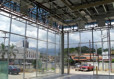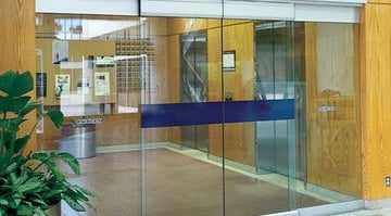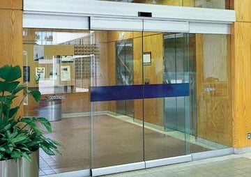 Puerta corrediza automática en vidrio templado laminado, en vidrio solo o enmarcada en aluminio. Cabezal con motor silencioso y sensores de apertura.