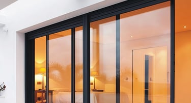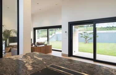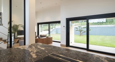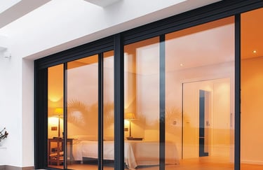Puerta corrediza de aluminio de diseño amplio para accesos principales y terrazas de gran tamaño, perfiles para mayor carga estructural.