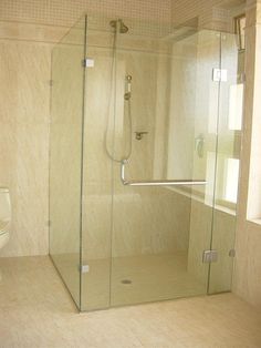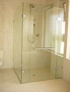 Vidrio templado 8 o 10 mm con chapetas de acero superior e inferior en lugar de zócalo. Freno hidráulico de piso para cierre controlado.