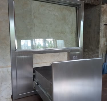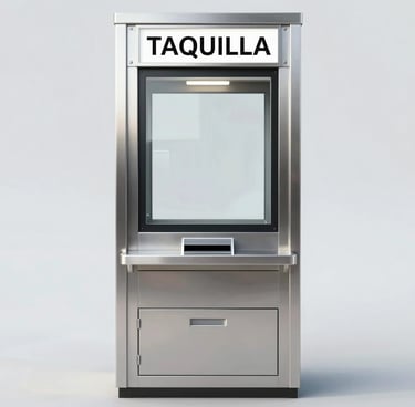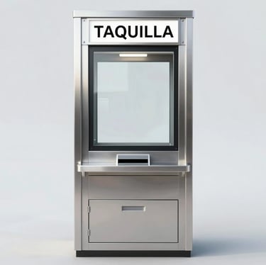 Fabricación de taquillas de seguridad en acero inoxidable 304 con vidrio blindado integrado y gaveta giratoria de intercambio. Atiende al cliente, entrega y recibe valores, documentos o productos sin abrir la barrera de protección. Para bancos, farmacias, gasolineras y cualquier negocio con atención nocturna.